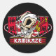 Adesivo Redondo Crânio Kamikaze com espada japonesa
