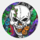 Adesivo Redondo Crânio preto e branco com borboleta monarca