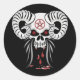 Este crânio malvado tem chifres de carneiros e presas que secam sangue com pentagrama vermelho e olhos brilhantes. Este é um crânio de mau que todos amarão!