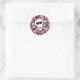 Adesivo Redondo Crânio rosa e ossos cruzados com coração e Arco