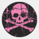 Adesivo Redondo Crânio rosa vestido e ossos cruzados