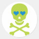 Adesivo Redondo Crânio Verde Crossbones & Heart Eyes