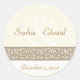 Uma brisa marrom ornamental contra fundo creme serve como o elemento gráfico principal desse adesivo elegante. Use-o para selar seus convites de casamento, guardar a data ou o anúncio do noivado; selar as bolsas ou apenas colá-las em qualquer lugar. Personalize com seus próprios nomes e data do evento. Produtos correspondentes disponíveis. Consulte esta loja para ver outras opções de cor.