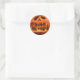 Os adesivos de Dia das Bruxas assustadores com uma abóbora laranja Jack-o-lanterna com uma face esculpida e gritante. Esses adesivos incluem uma mensagem personalizável como "Feliz Dia das Bruxas" "Boooo Boooo" ou "Trick or Treat". A design destaca-se com seu efeito colateral e estranho em 3D.