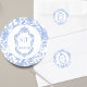 Adesivo Redondo Crest Monogram Delft Blue Floral Wedding