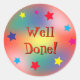 Estrelas brilhantemente coloridas rodeiam seu texto personalizado, mostrando: "Muito bem!" Faz um excelente de incentivo motivacional para as crianças, excelente para o trabalho escolar e realizações.