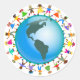Ótima ilustração cartoon de um grupo de meninos e meninas felizes e diversos, de mãos dadas ao redor do globo com um mapa da América do Norte e do Sul. Imagem disponível em vários presentes e produtos. Personalize se você preferir e alterar a cor do plano de fundo ou adicionar algum texto.