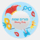 Adesivo Redondo Crianças Azul Hebraico Feliz Purim