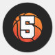 Adesivo Redondo Crianças Basquete Aniversário 5 Número Cinco Anos