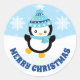Adesivo Redondo Crianças bonitas Pinguim de Chapéu Azul Feliz Nata