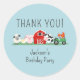 Crianças Fazenda Festa de aniversário Animal Obrigado. Personalize com um nome para festa de aniversário ou evento. Fornecimentos de animais de exploração, suínos, vacas, ovinos, galos, galos e fazendas. www.SamAnnDesigns.com