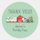 Crianças Fazenda Festa de aniversário Animal Obrigado. Personalize com um nome para festa de aniversário ou evento. Fornecimentos de animais de exploração, suínos, vacas, ovinos, galos, galos e fazendas. www.SamAnnDesigns.com