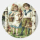 Adesivo Redondo Crianças Vitorianas Páscoa Coelho Pintinho Ovo Bir