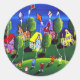 Folk Art com crianças voando pipas coloridas contra um céu azul profundo. Casas Whimsical alinham o fundo.