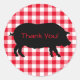 Adesivo Redondo Crie Seu Próprio Porco Silhouette Gingham Obrigado