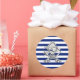 Um cromo prateado como design pirata em uma decoração de listras azuis marinho. Um presente náutico moderno. Use o link "Perguntar a este Designer" para entrar em contato conosco com suas solicitações especiais de design ou para obter assistência com qualquer das suas necessidades de personalização.