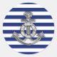 Um cromo prateado como um design de âncora salva-vidas em uma decoração de listras azuis marinho. Um presente náutico moderno. Use o link "Mensagem" para entrar em contato conosco com suas solicitações especiais de design ou para obter assistência com qualquer das suas necessidades de personalização.