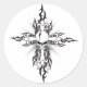Este Crucifixo do Crânio Tem um crânio no centro de uma cruz de rico com cipós de espinhos se espalhando atrás dele.