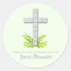Uma cruz branca sobre verduras claras num palheiro verde de menta pálido. Design perfeito para Primeira Comunhão, Batismo, Cristo, favoritos para festas de Dedicação e muito mais. CORRESPONDENDO a itens na nossa loja.