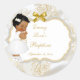 Adesivo Redondo Cruz do ouro do baptismo do bebé do afro-americano