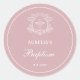 Adesivo Redondo Cruz Floral Simples no Batismo Rosa