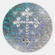 Foto impressa de uma cruz com rotinas de diamante de gemstone faísca falsa, com fundo de prata falsa impressa com padrão circular azul esparsa. Uma rua na moda e um olhar urbano com um pouco de inspiração. A brilho azul e prateada parece uma imagem gráfica impressa plana. Todos os Designs Copyright © 2012 www.CuteComfy.com