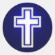 Um autocolante cristão único com cruz religiosa branca sobre fundo azul marinho.