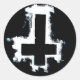 Uma folha de seis grandes adesivos com o logotipo do Coletivo oculto, a cruz invertida.