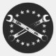 Um par de cruzes crus amovíveis aflitos num círculo de estrelas. Imagens negras e brancas em t-shirts, suores, troca de presentes novidade.