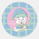 Adesivo Redondo Cubo de Urso Polar Bonito com Vinheta de Natal de