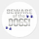 Adesivo Redondo Cuidado com os cães! Com as pegadas azuis