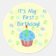 Adesivo Redondo Cupcake Azul com Vela Primeiro Aniversário