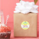 Esta etiqueta para pequenas empresas do "Obrigado Bakery" apresenta um design de verificação de gingham amarelo e cupcake de .