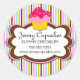 © 2010 Designs socialitas. Cupcake Whimsical em um banner de nuvem, e design de fundo listrado, adesivos.