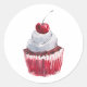 Cupcake de chocolate com uma cereja sobre adesivos.