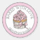 Adesivos de cupcakes rosa e prata polvilhados. Rótulos Assado com amor para cupcakes assados à mão ou para empresas como padarias ou restaurantes.
