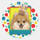 Celebrar um aniversário com este Cartão de Saudação de Cão Pomeraniano. Com um cupcake balanceado na cabeça, este design pode trazer um sorriso e risadinhas! BTW, Este design tem várias versões, com diferentes cores de fundo. Há também um convite para uma versão do Partido.