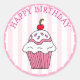 Adesivo Redondo Cupcake de Aniversário Rosa Bonito