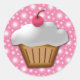Adesivo Redondo Cupcake de corte com cereja rosa no topo