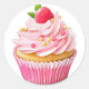 Adesivo Redondo Cupcake de nata rosa com aniversário de bagas