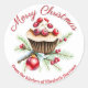Adesivo Redondo Cupcake de Natal festivo com amoras vermelhas