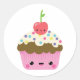 Adesivo Redondo Cupcake Kawaii com Cereja no Topo