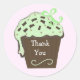 Um obrigado divertido que você coloca com um cupcake de chocolate verde macio com borrachas de chocolate.