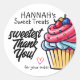 Este é um adesivo "Obrigado" com um cupcake rosa e cerejas no gráfico superior. Isso pode ser usado pelas pequenas empresas em seus produtos comprados pelos clientes.