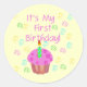 Adesivo Redondo Cupcake Rosa Com Vela Primeiro Aniversário