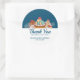 obrigado festa de aniversário que você autocolante personalizou com seus próprios detalhes. Projetado com uma fileira de cupcakes deliciosos com espirais e cerejas e glacé delicioso. Ilustrado em um estilo retrô clássico. As cores incluem verde retrô, vermelho, azul e creme.