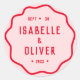 Apresentamos nossa Adesivo Redondo Clássico Curva Retro Ondulada Squiggle Rosa Vermelho Brilhante e Ousado, a adição perfeita para a decoração do seu casamento. Este adesivo apresenta uma mistura cativante de tipografia ousada, cores vibrantes e uma estética moderna única que irá elevar o estilo do seu casamento.