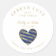 Custom Dark Blue Heart Wedding Sanitizer Hands Classic Round Sticker.