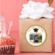 These personalized modern gold graduation party stickers feature typography of your university or college name for the class of 2026 above your senior portrait photo. Customize with your graduating year below the black grad cap for great personalized congratulations graduate party stickers.