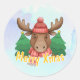 Adesivo Redondo Cute Animal Moose Blue Watercolor Merry Xmas